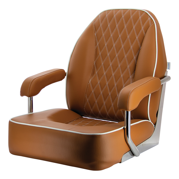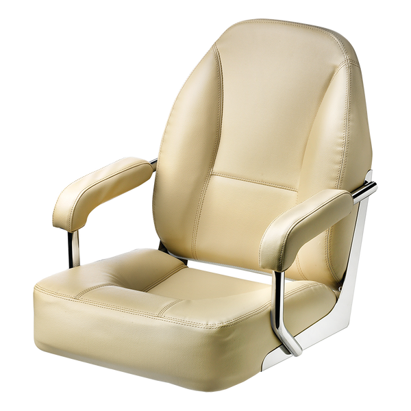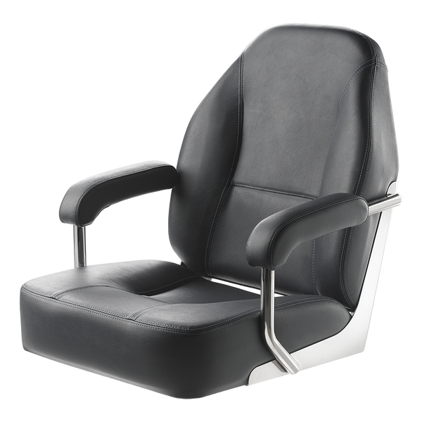 The Vetus Master boat seat is a high quality helm seat with armrests. It is a comfortable seat with excellent support. The seat has a stainless steel frame (AISI316) and is finished in maintenance free, water and UV resistant Skai imitation leather, ideal for marine use.