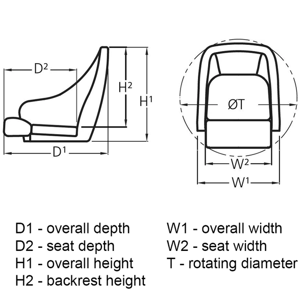 The Vetus Sailor 2 boat seat is a high quality helm seat with armrests. It is a comfortable seat with excellent support. The seat has a stainless steel frame (AISI316) and is finished in maintenance free, water and UV resistant Skai imitation leather, ideal for marine use.