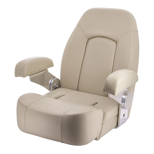 The Vetus Seaman boat seat is a comfortable and roomy boat seat with a classic appearance; the front bolster can be folded up for steering in a standing position and the armrests can be flipped up. The seat is finished in maintenance free, water and UV resistant Skai imitation leather, ideal for marine use.