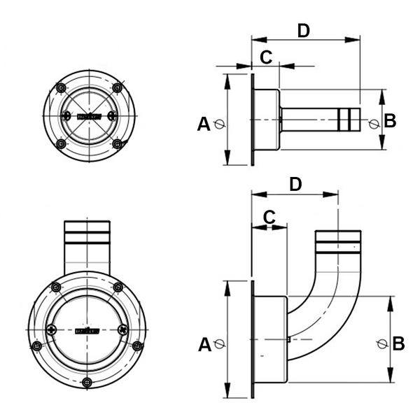 Vetus AB16S straight and AB16B angled air breather vent for 16mm hose. Made of AISI 316 stainless steel and equipped with a gauze to prevent the ignition of petrol fumes in the vent pipe or the tank.