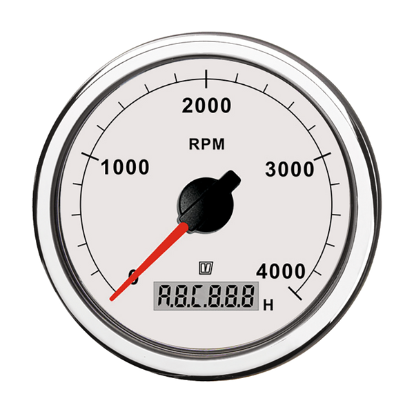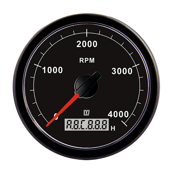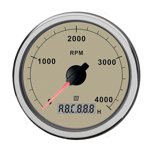 The Vetus tachometer includes a digital hour counter and is available with the dial in black, white or cream-grey, supplied with a choice of bezels.