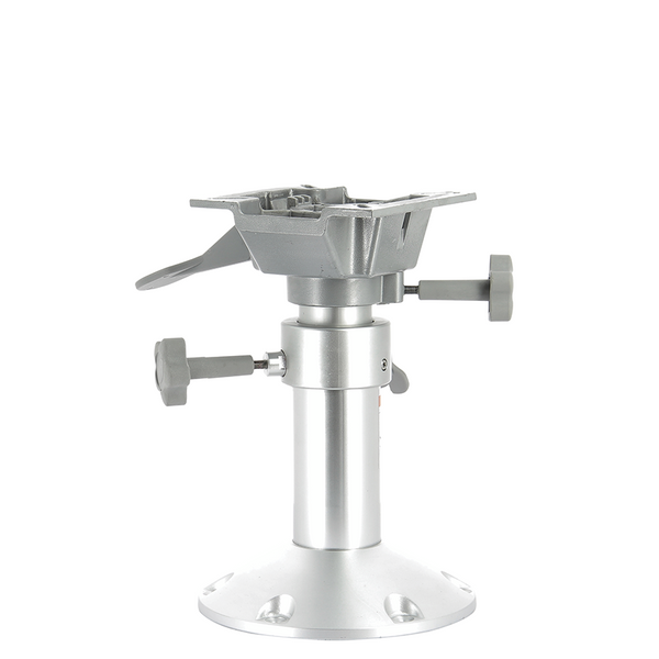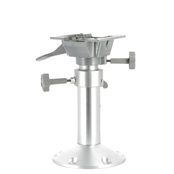 Adjustable height seat pedestal with 360° swivel with friction lock. Made from marine grade aluminium with anodised anodised base.