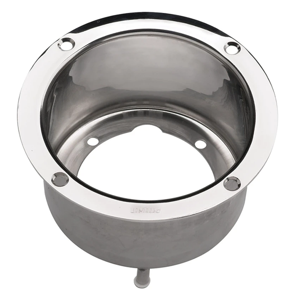 The HTPF polished stainless steel flange can be used to fit a pump type HTP in the mounting hole of an older Vetus type MTP pump.