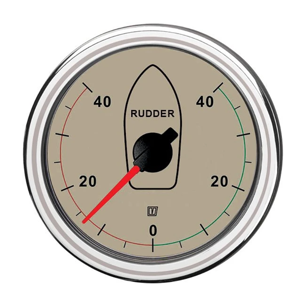 The Vetus rudder position indicator is a high quality instrument available for 12v and 24v systems and is available with the dial in black, white or cream-grey. It is supplied with a choice of bezels.