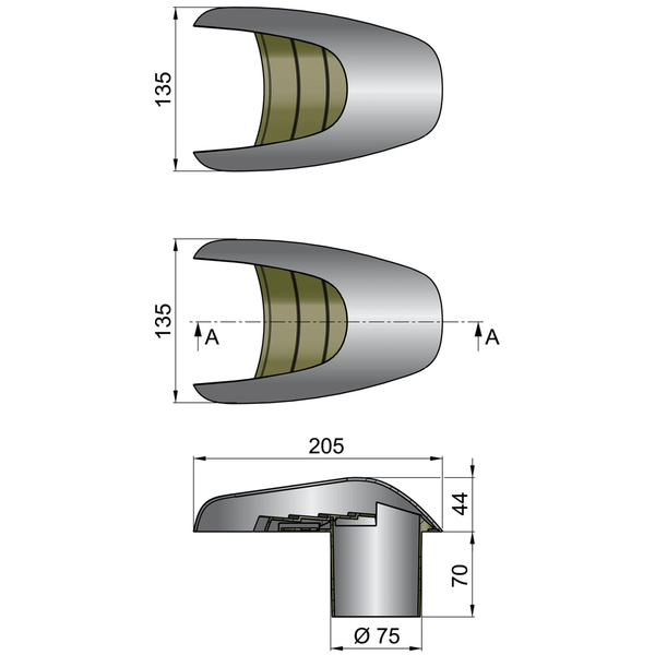 The Vetus Typhoon is a high gloss polished AISI316 stainless steel deck ventilator with a synthetic interior.